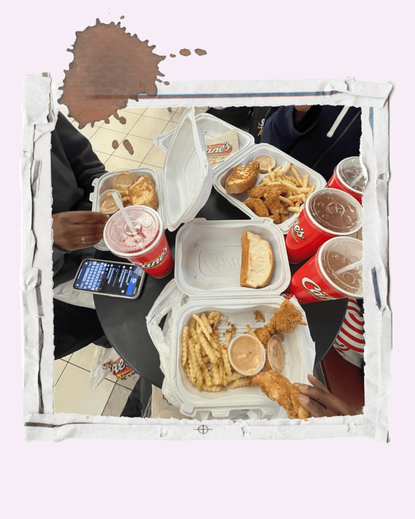 my suitemate really wanted canes and who am i to turn down fried food and a lil suite adventure. we took the metro and then my roommate got mildly verbally assaulted by someone who smelled like pee… but luckily we were at our stop so it wasn’t that big of a deal. union station is the only place in dc with a canes and the last time we went it was absolutely packed because it was the weekend after open. this time the line was relatively short and we got our food pretty quickly. i hate eating in food courts because everything feels greasy and it ends up making me a little nauseous, so i did not finish my food. but i bagged it up for home.