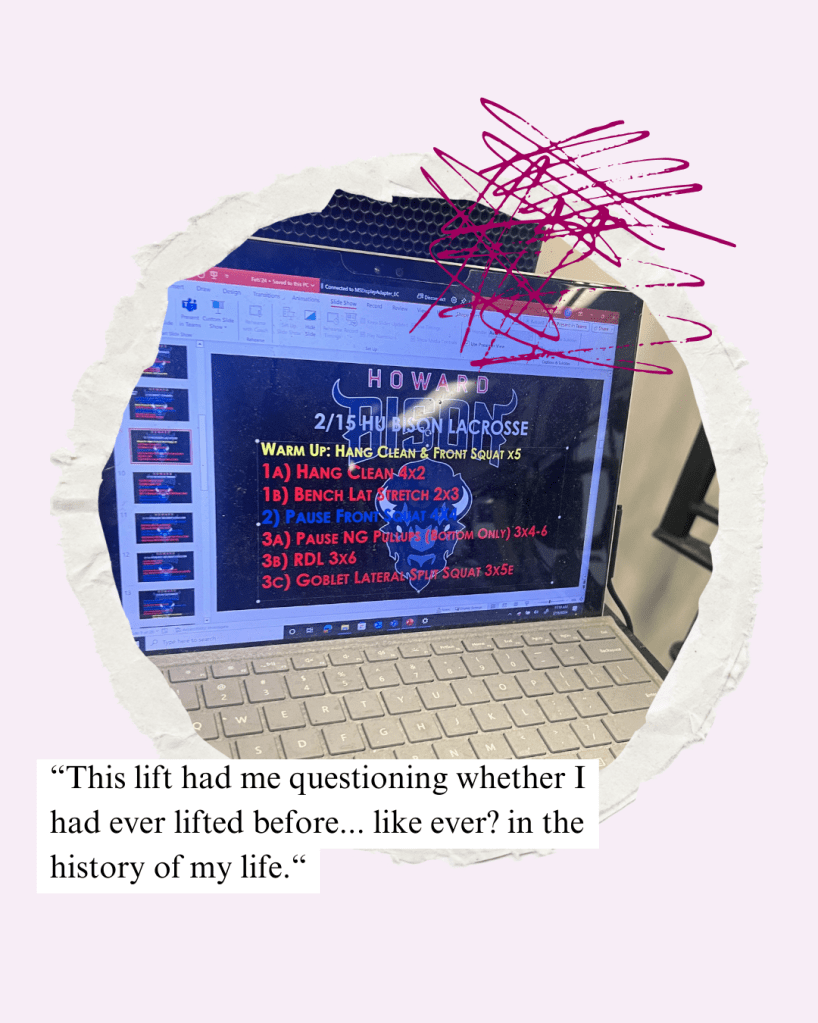 practice was really good. i felt really energized afterwards. we played survivor style which is 7’s (essentially half court basketball for people who don’t know lacrosse) but if you make a mistake you’re pulled out and replaced. defense played really well for literally not having subs.